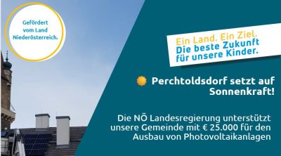 Die NÖ Landesregierung unterstützt unsere Gemeinde mit € 25.000 für den Ausbau von Photovoltaikanlagen auf dem Amtshaus, dem Feuerwehrhaus, dem Freizeitzentrum, dem Wasserwerk und auf einem Hochbehälter.
